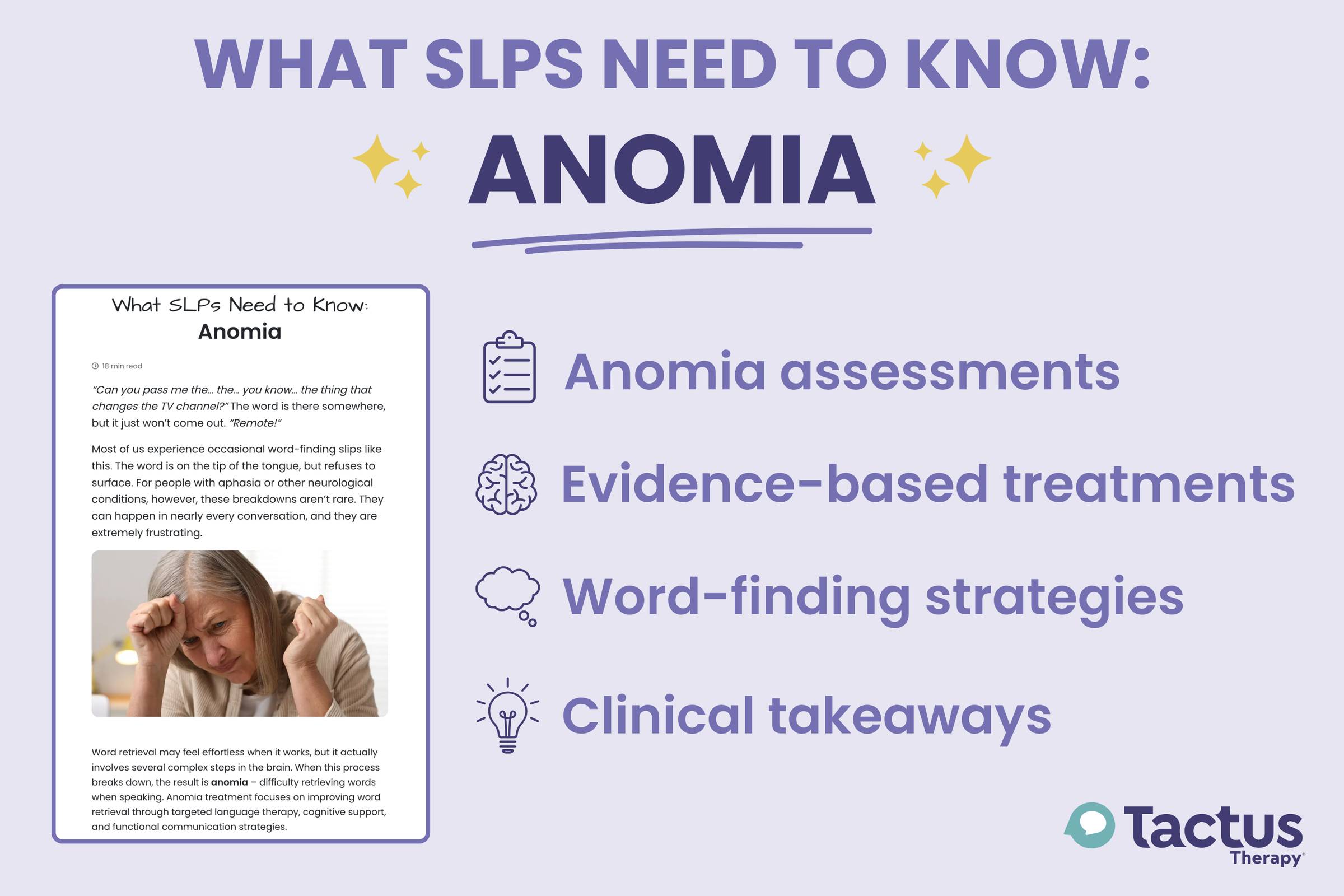 Hi! 👋 There's a new article covering anomia on the Tactus website. And while there's a lot of great info, three findings kept stopping me in my tracks... https://tactustherapy.com/speech-therapy-anomia-word-finding-retrieval-aphasia/ 1️⃣ First: SFA isn't just SFA anymore. Two recent studies added cognitive components. One study paired it with executive function training, and another with working memory. Both showed gains beyond naming, including discourse and quality of life. 🙌 Sample sizes...