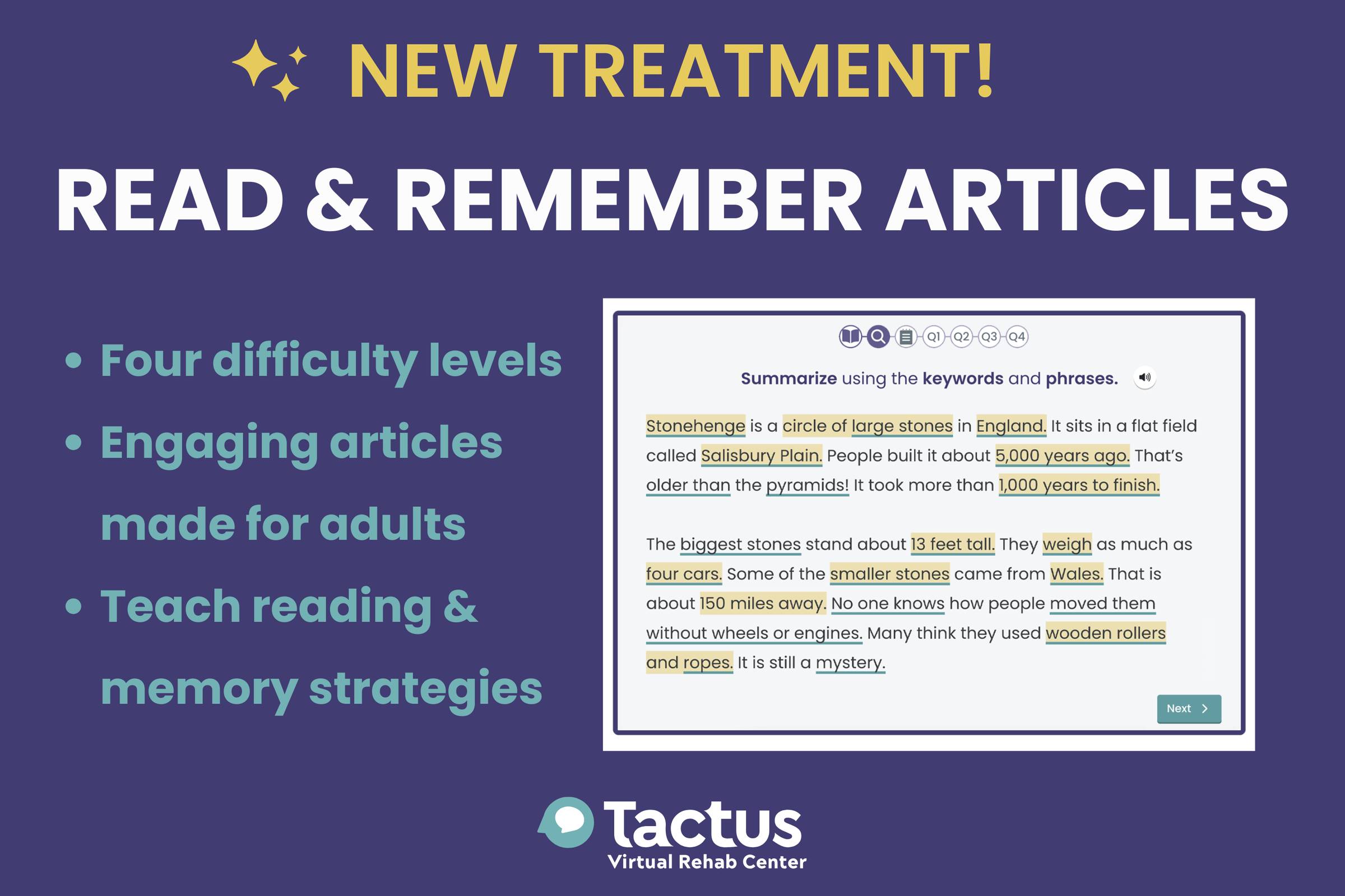 Thank you for your dedication to your work. Let’s continue to use research and innovation to improve outcomes for our patients. Best, Megan P.S. At Tactus Therapy, we’re always finding ways to help YOU support your patients. If they need extra practice, remember that we offer free homework through the online Virtual Rehab Center that can be done on any device. Sign up and assign home practice today! |