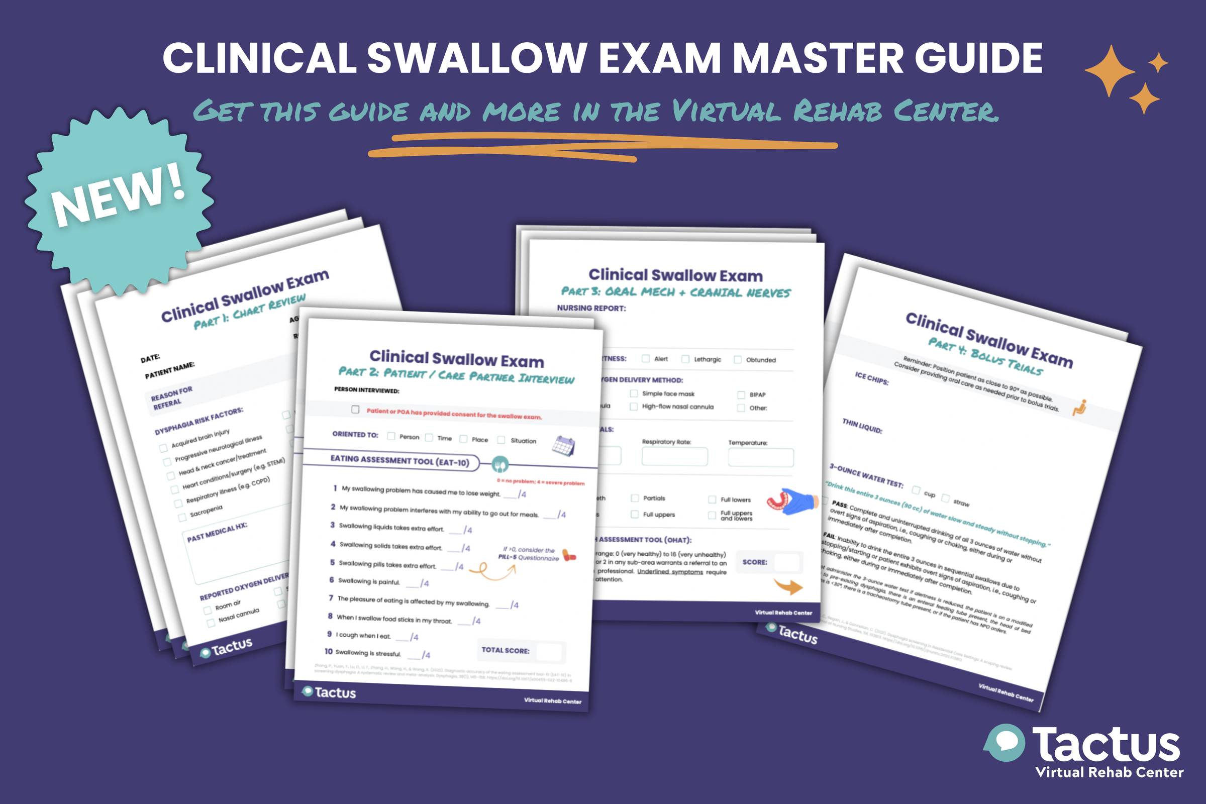 🪄 Here you go! We’ve bundled everything you need for a complete bedside assessment into one 14-page downloadable resource: the Clinical Swallow Exam Master Guide, available right inside the Virtual Rehab Center. This beautiful PDF includes 5 parts to guide each step of your CSE: